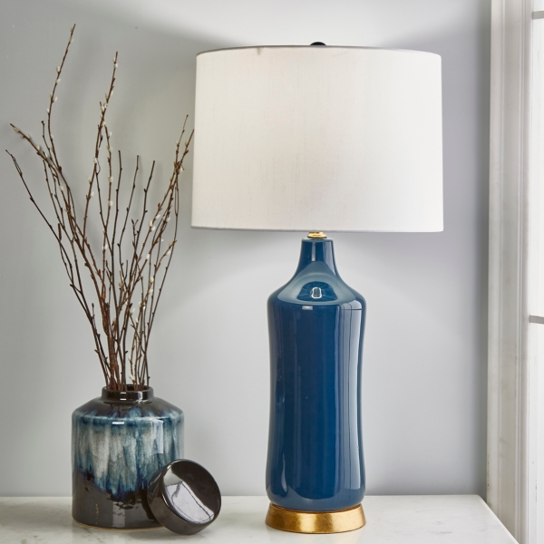 The finial at the top also features a delicate pattern. At your doorstep faster than ever. For example, ceramic table lamps in a soft blue finish or with a geometric design can effortlessly bring a room together. Bc# 297600 blue and white floral vase lamp (1) by east enterprise. Antique brass palm table lamp with natural shade 77cm. Made with a traditional rounded urn profile, this lamp is topped with a cream hardback shade. Coupon savings $241.50 extra 20% off with code. Save an extra 20% off select eligible items with code save20 at checkout. Uttermost gistova gold table lamp. Blue ceramic tong lady table lamp. Shop the nation's largest lighting retailer for best selection, service & value! Blue ivy table lamp sale $125.99. Sold and shipped by lamps plus.